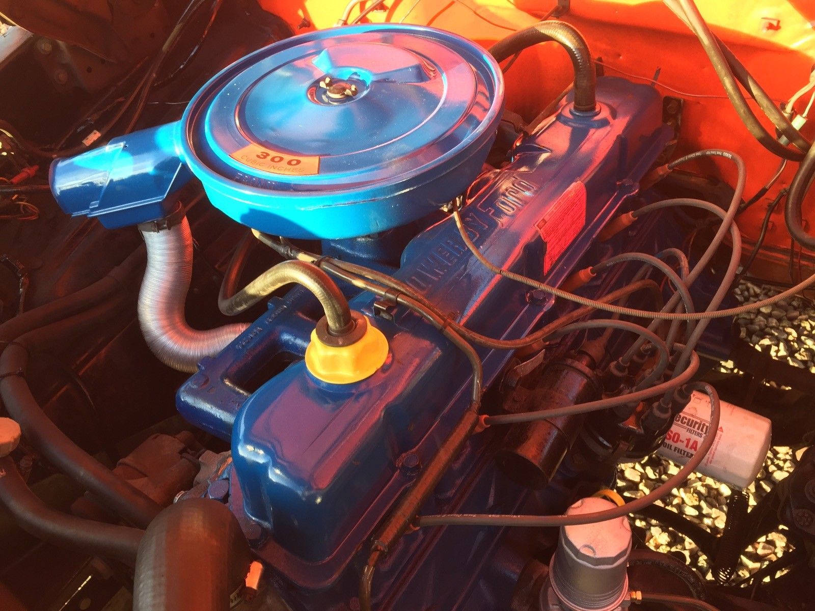 Obviously, the exterior nor the interior is original. Moving to the engine compartment…the thermostatic choke heat riser tube is aftermarket (the original was steel,mating with the exhaust manifold heat stove). The PCV grommet in the rocker cover is painted and of course the breather is aftermarket also. Replace the rest of the hoses and plug wires with Motorcraft and present it as it is…..a nice truck that has been taken care of…not original.