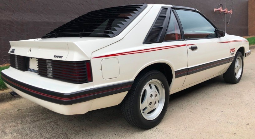 An 86 Capri 5.0 with a bubble back rear window was a real sharp car and better looking than and fox Mustang of the day IMO. This car in particular is a looker and very well kept, I wish it had different rims though.