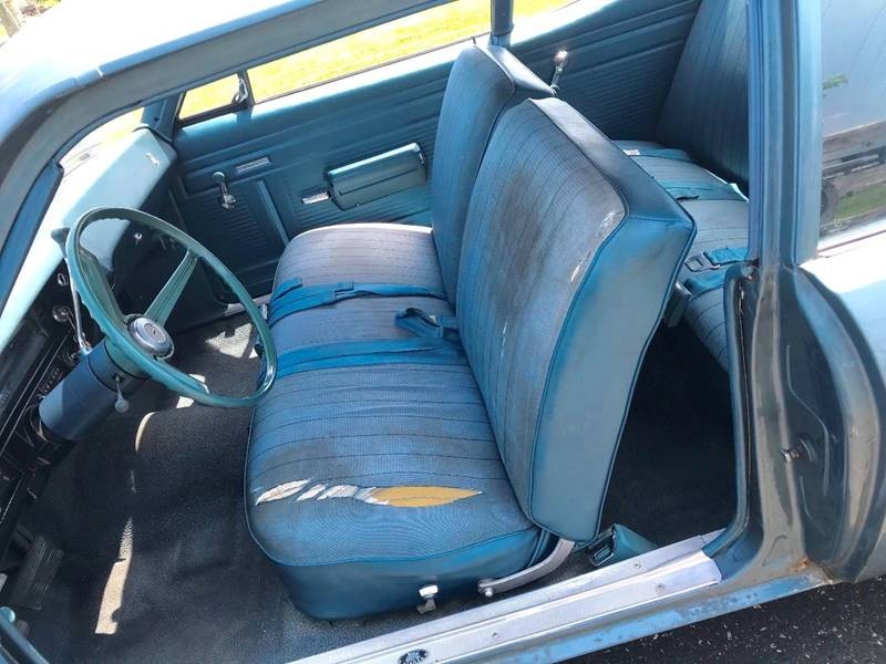 I had a ’72. 250 CID straight 6, 3 speed manual on the column, AM radio, antenna in the windshield, rubber floor lining (not carpet), no PS, no PB, no Air, bias ply tires on steel wheels, Chevy bow tie on moon hub caps, cozy wings, manual vents on kick panels. Same metallic blue color as this one (by the way the paint from the factory was as thin as possibly could be put on a car). Dad bought it new, it became mine around 1982, I sold it in 1987.
