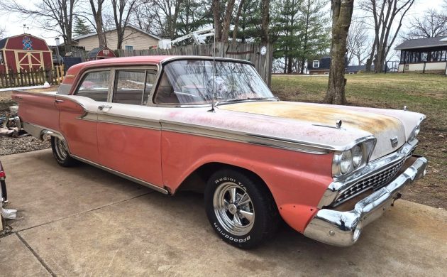 During the 1959 model run, the Ford Galaxie was introduced as the top-tier trim level for the Fairlane, a position previously held by the Fairlane 500. A complete redesign was in store for 1960, so the ’59 Galaxie is essentially a unique,one-year-only offering. The first model has some great curves outside as well, with even the 4-door examples featuring fun styling all around and plenty of ornamentation. This one’s a project, but the owner believes the engine is almost ready to run and claims it’s a very solid car. This sedan is in O’Fallon, Missouri, and is available here on eBay with a buy-it-now price of $7,500. T.J., thanks a lot for your excellent blue oval tip here!