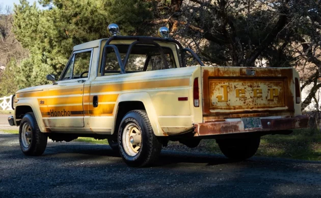 There are certain things that never would have gotten the stamp of approval in any decade other than the ’70s (or the early ’80s, in this case), and one might be the Jeep J-10 “Honcho.” A honcho is the boss, the main man (or woman); therefore, this is essentially a Jeep “Boss.” So far, so good, Ford got some miles out of a name like that. But there’s an auditory difference between “boss” and “honcho,” isn’t there. Jeep doubled down on cheesiness by introducing the Honcho in ads as being “mucho macho,” which is situated somewhere in that special place between a smile and a cringe. However you feel about the name, and I’ve gone on long enough about it, this 1980 J-10 Honcho has its original paint and stripes, is surprisingly solid, and is currently for sale on eBay in Oregon.