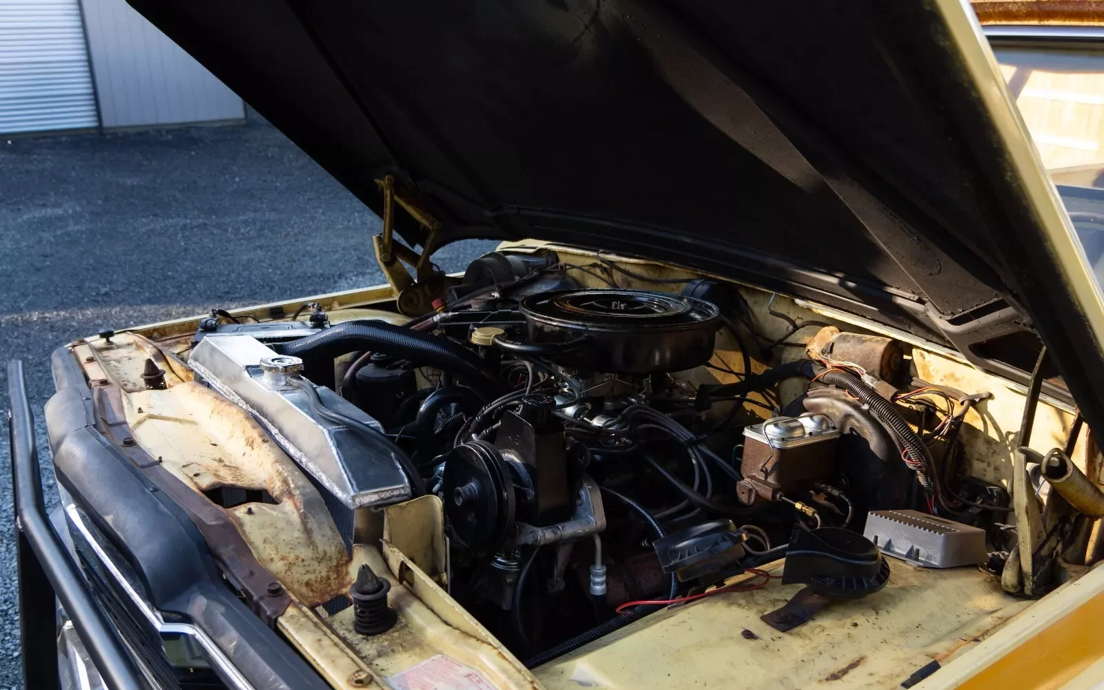 Only two engines were available in Jeep trucks in 1980, the standard 258 cubic-inch AMC six, or this 360 V-8 with a two barrel. The early 1980s were a sad time for engines, and indeed the 360 had been de-honchoed to the tune of 129 horsepower and 245 lb.-ft. of torque. The seller gives limited information about what’s been done to the truck, but it clearly has a newer aluminum radiator and what looks like a new or remanufactured Motorcraft two-barrel carburetor under a nice, shiny air cleaner. Power steering was a mandatory option on the Honcho, and it looks like you might even get a new pump and hoses.