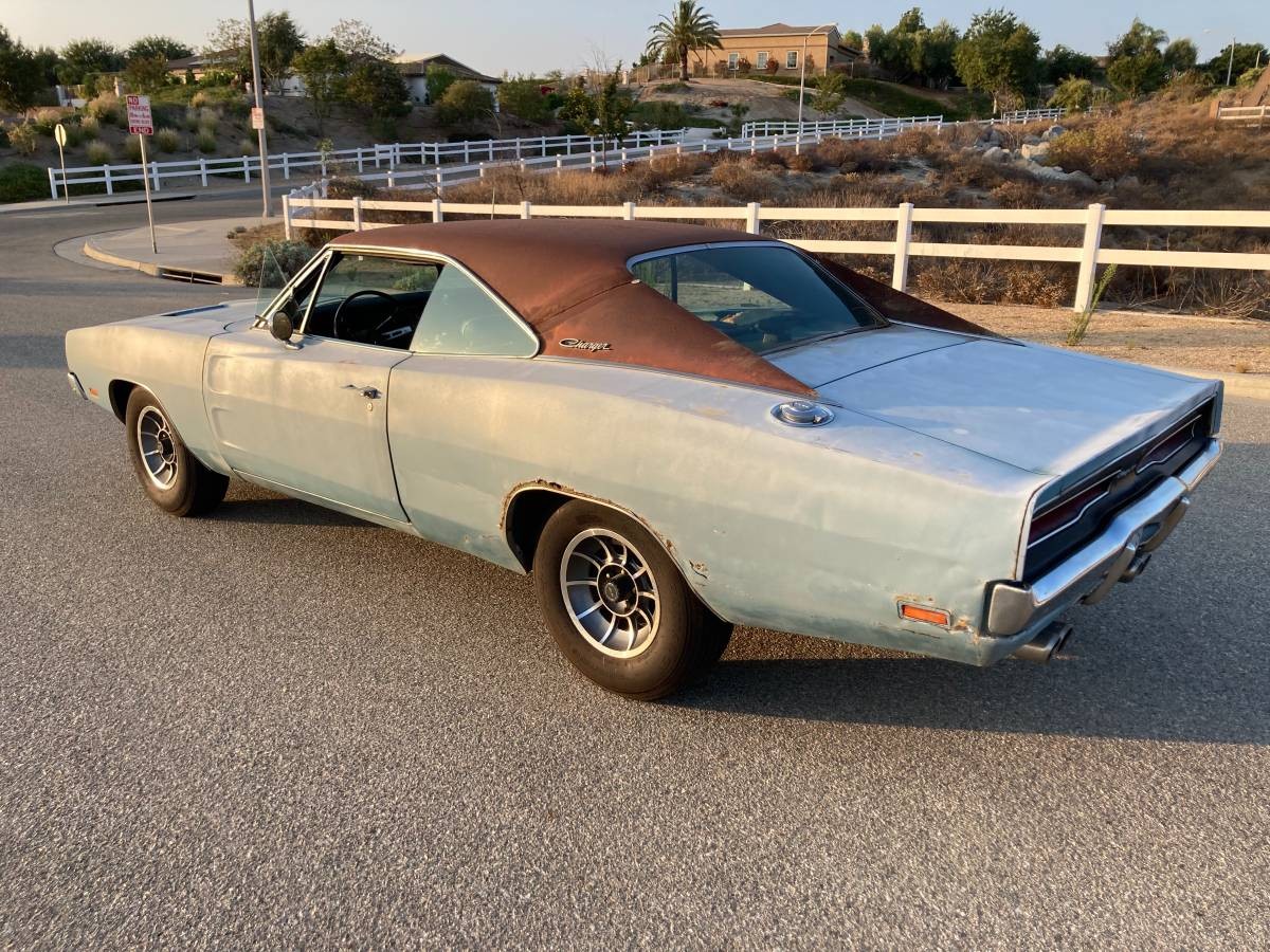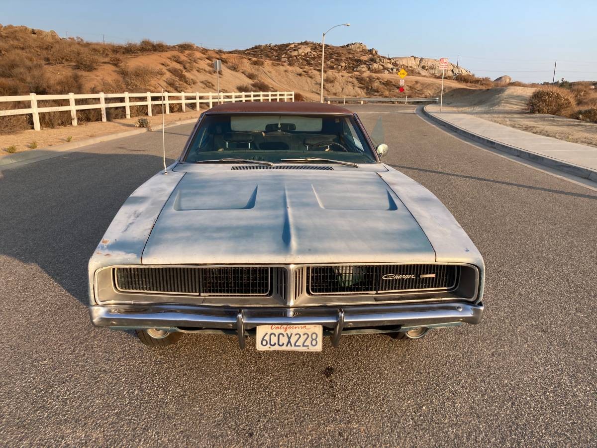 I’m not sure what the original color of the car was. Either a blue or a silver grey. The current car is currently riding on aftermarket 10 spoke vector wheels that many Charger enthusiasts prefer on their cars. It is one of my favorite wheel designs. While the body is going to need some work and rust repair, this appears to be an excellent candidate for a restoration and it’s a bonus that it is still running after over 50 years.