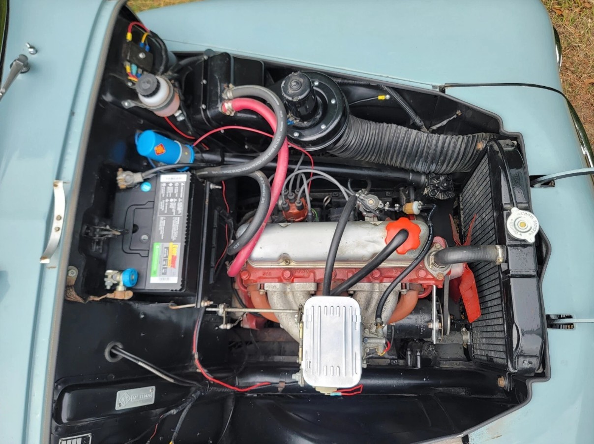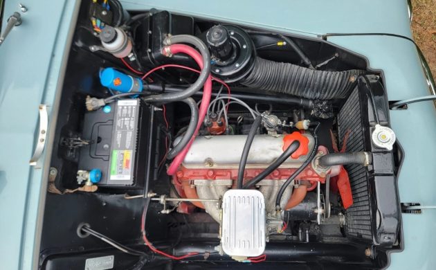 That engine is clean, possibly from an overhaul. Leave the funky rubber mats; they’re part of the car’s character. And the car has more character than 100 Toyotas. Evidently it was stored for years, and the seller just got it running again. Contact him and ask what the reserve is, then make an offer.