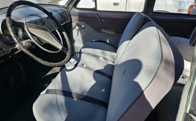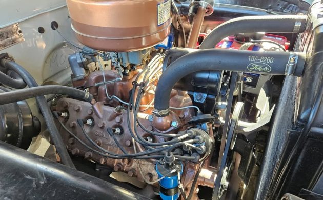 The seller says that the Ford has new “upholstery, headliner, and flooring,” in addition to a 12-volt electrical system with blinkers and an electric fuel pump to keep that pesky vapor lock away. The interior itself doesn’t quite match Ford sales brochures from the era, but it’s not egregiously tacky or out of place; rather, it looks like a durable fabric done by someone who knew what they were doing, which is about all you can ask for in a good driver. The transmission is a three-speed manual with the optional .70:1 overdrive, which got a standard 4.10:1 axle ratio; therefore, drivers got the best of both worlds, good off-the-line acceleration and more relaxed high-speed cruising. The seller also mentions that the suspension bushings, gas tank, and weatherstripping have all been replaced.
