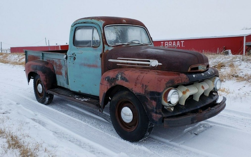 When we begin to see a pattern develop of a certain type of vehicle appearing for sale with some regularity, I always check to see if the seller is a vendor that’s dabbling in one genre of car or truck. Sure enough, after profiling an awfully honest GMC 3100, my feelings of deja vu for this latest farm truck find were confirmed. Apparently, the seller has a lock on heavily-patina’d farm trucks from the Midwest, and his latest find is a lovely 1952 Ford F3 listed here on eBay with bidding over $2K and no reserve.