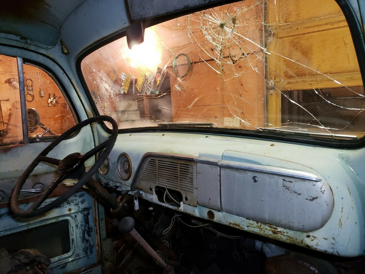 The one photo of the seat in the eBay gallery shows a bench that will need re-upholstery, but that’s to be expected for a truck of this vintage and condition. A new windshield is also needed, or you could live with and see how long you can escape the local vehicle inspection warden. The dash is a simple affair with no signs of alteration or damage, and aside from an upholstery job and new glass, there’s not much I’d change inside or out. We’ll be waiting for the next farm truck this seller digs up.