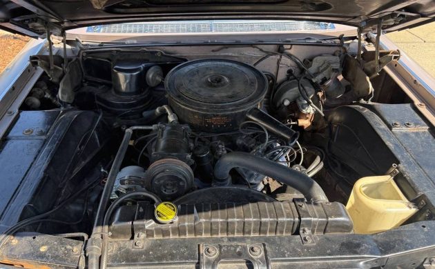 This is a great looking Caddy from the golden years. The AC belt is missing which probably indicates a leak and/or a bad compressor. Those old A6 compressors weren’t very tolerant of running out of Freon and oil.
