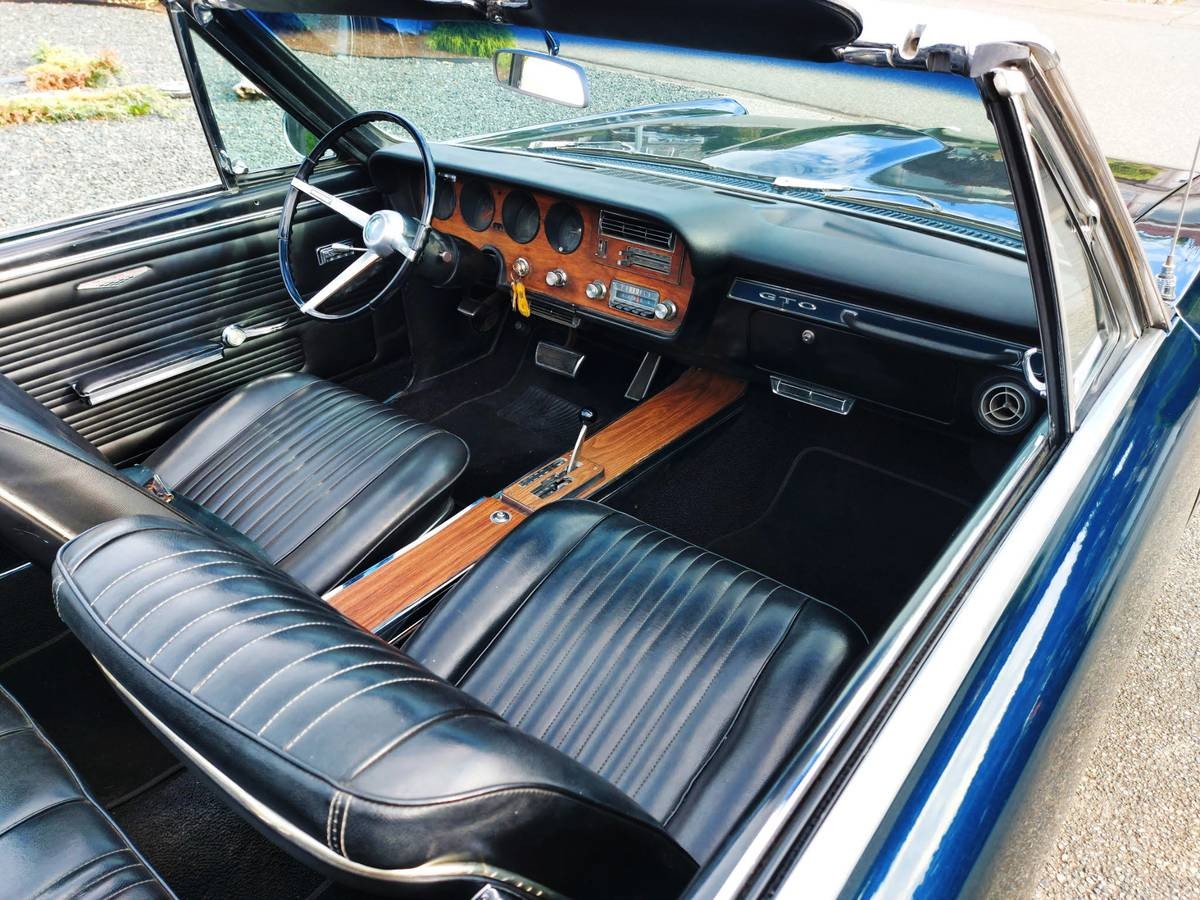 The restoration of this GTO included a complete interior retrim, leaving the inside of this classic in virtually as-new condition. The Black vinyl upholstered surfaces and the carpet are free from wear, with the dash, pad, and faux timber in excellent shape. Driving this classic with the top lowered will cause the buyer’s chest to swell with pride, while luxury touches include air conditioning, power windows, a tilt wheel, bucket seats, a console, and an AM radio. That means that this GTO does its best to combine performance with a comfortable motoring experience.