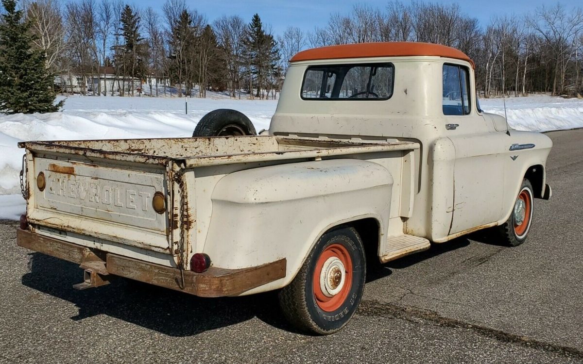We have a 57 like this that came from Oklahoma. Totally rust free. It had a non show quality paint job and the seat had been redone. It looks like a show truck now the paint has been wet sanded and buffed. We recently installed a 350 engine, 5 speed manual transmission, AC, power steering and brakes along with a gas tank under the new oak bed. We have way more invested than it would sell for. But we love it and plan to keep it and drive the wheels off of it.