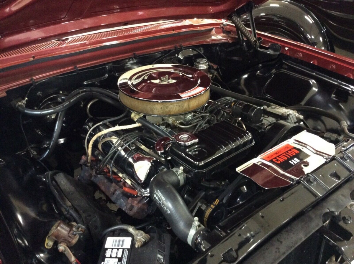 Beautiful car that I would be proud to own but everything about this car screams restored. Chrome valve covers, hipo air cleaner, chrome radiator shroud. I don’t necessarily doubt the mileage but I think the car is a pretty high end restoration. I owned a couple of 64’s in the past and I don’t recall ever seeing the hood ornament or the extra piece of side molding but I’d defer to a Ford expert to clarify that