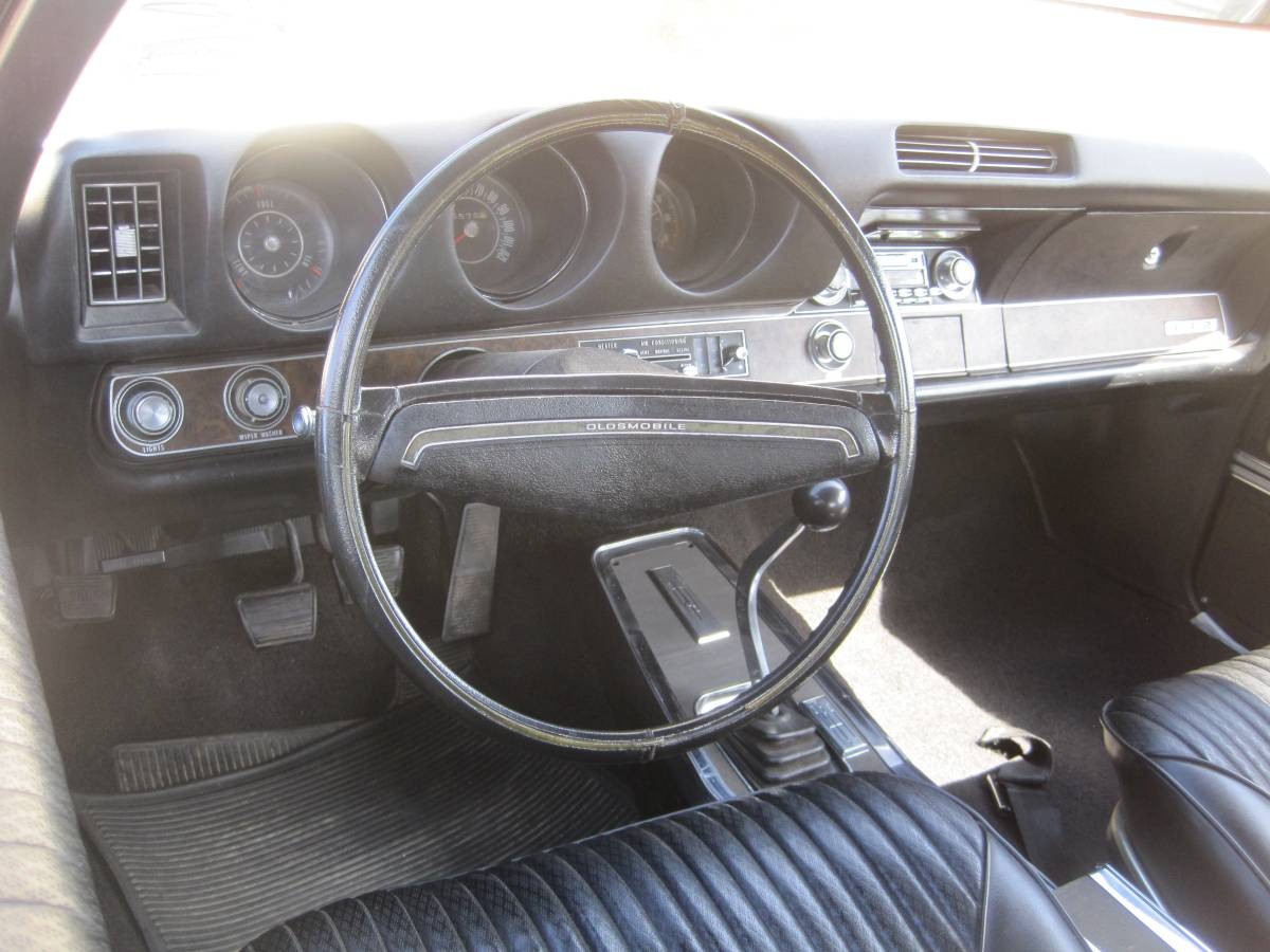 Turning our attention to the interior, the news continues to remain positive. The original owner ordered this 442 trimmed in Black vinyl, which remains in excellent condition. There is no evidence of wear, physical damage, or abuse. The carpet looks nice, the dash and pad are spot-on, and the faux woodgrain hasn’t deteriorated. The wheel has a few fine cracks, but that’s about all that rates as a genuine flaw. The Window Sticker indicates that the original owner ordered the Olds with a factory tape player, but this is no longer present. There have been no aftermarket additions, which is refreshing in a classic of this type and age. Luxury touches include air conditioning, bucket seats, a console, a factory Tick-Tock-Tach, and an AM/FM radio.