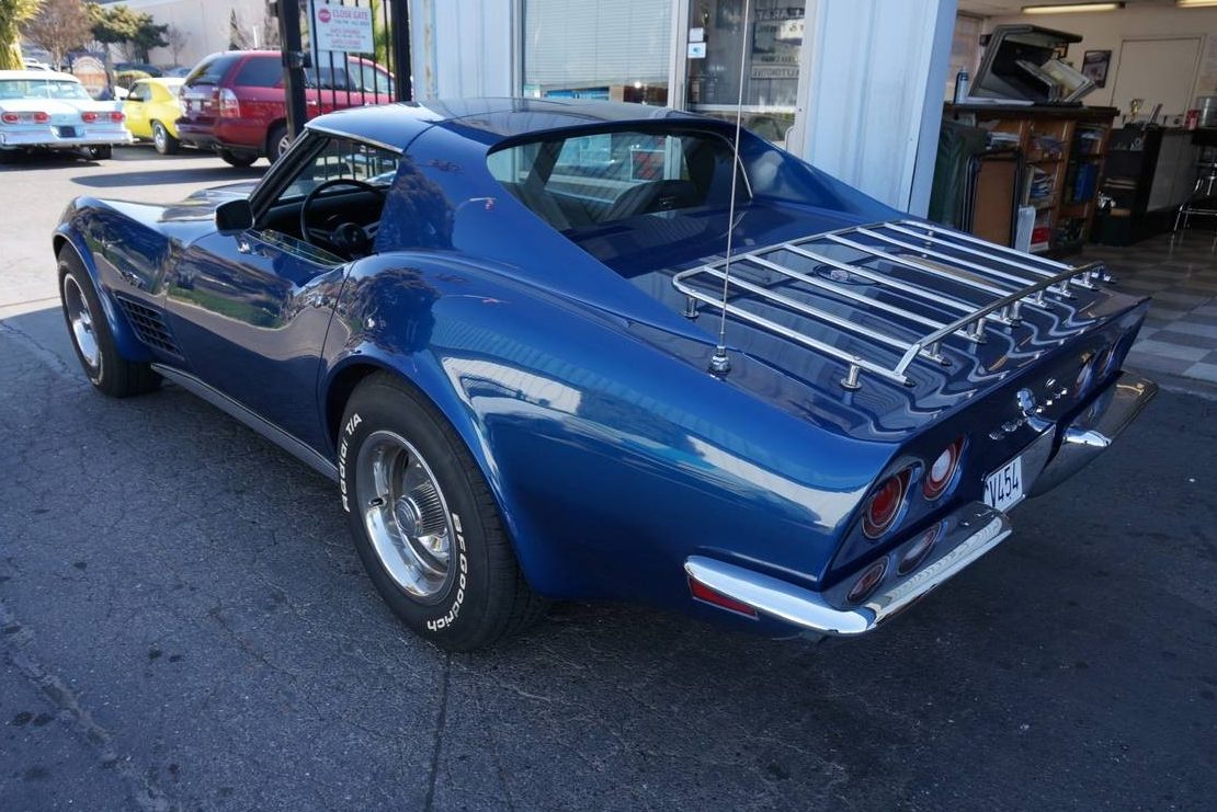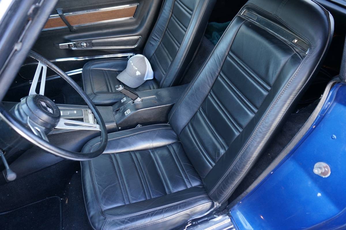 The seller says that while the Corvette is no trailer queen, it has been garaged and pampered for its entire life. When you combine those two factors with a life spent in California, it’s no real surprise to learn that there are no rust problems with the frame or birdcage. This sort of life also means that the Blue paint presents superbly. However, the seller refers to the color as Bryar Blue, but I’m not convinced. To me, this Corvette looks like it is wearing the much darker Targa Blue shade. It holds a magnificent shine and has a depth of color that shows no fading or checking. The fiberglass that hides beneath that paint is also in excellent condition, with no signs of fatigue cracks or chips. The bumpers and other chrome pieces appear to be in good condition and would certainly look acceptable for a driver-grade car. The luggage rack isn’t to my liking, but it is in good condition and is a practical addition to this car. The Rally wheels show no evidence of damage or staining, and the glass appears to be flawless.
