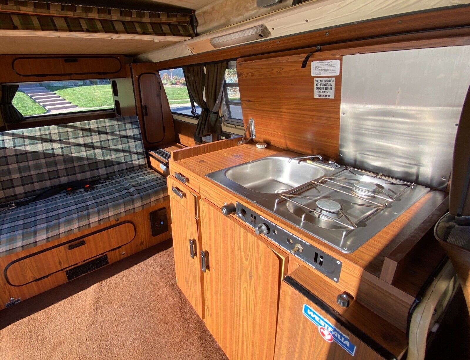 Had the same package in an orange ’77. Only difference from this one was a drop down table behind the passenger seat that folded outside reveling shelves below. Put over 70K miles on it with no problems and a lot of fun.