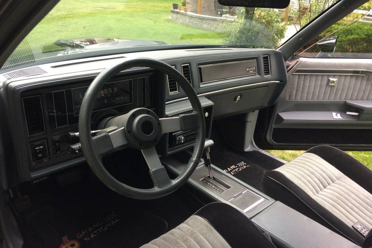 1987 was the last year for GM’s G-body cars (as I well know, having learned to drive in an ’87 El Camino), but it was also the year that the Grand National saw its greatest popularity. Production quadrupled over the previous year, to over 20,000 GNs (that figure is also about ten times as many as were built in 1984 and ’85), plus 547 of the even more powerful GNX. Showing just 45,000 miles (albeit on a five-digit odometer) this car’s interior still looks pretty fresh, although the remote for the modern stereo is visible on the passenger seat in the photo above, if that sort of thing matters to you.