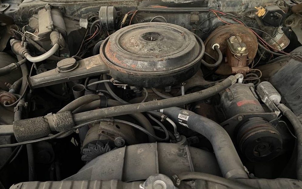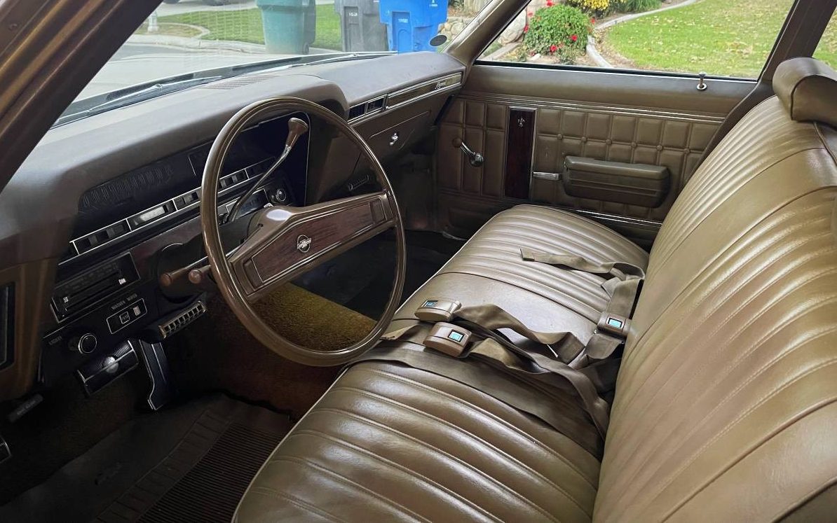 Power is provided by the standard V8 engine which is a 250 gross HP, 350 CI motor working through a Turbo-Hydramatic three-speed automatic transmission – it’s an adequate performer for a car of this girth. It “runs great!” according to the seller.