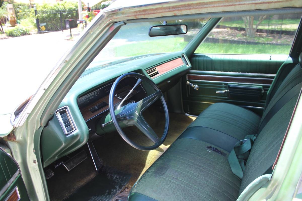 In addition to being willing to part with kind of a lot of green, the buyer of this clean but crunched Catalina had better like the color green, too—it’s inside, outside, and on top. Everything inside looks seaworthy—as long as the green doesn’t make you seasick—although it looks like there might be a little tape patch on the driver’s seat. No such problems out back. The shoulder belts clipped to the ceiling are a neat touch peculiar to these first few transitional years between the 1968 mandate for shoulder belts and the widespread adoption of three-point belts (and the not-unrelated demise of hardtops) by American manufacturers in the mid-70s.