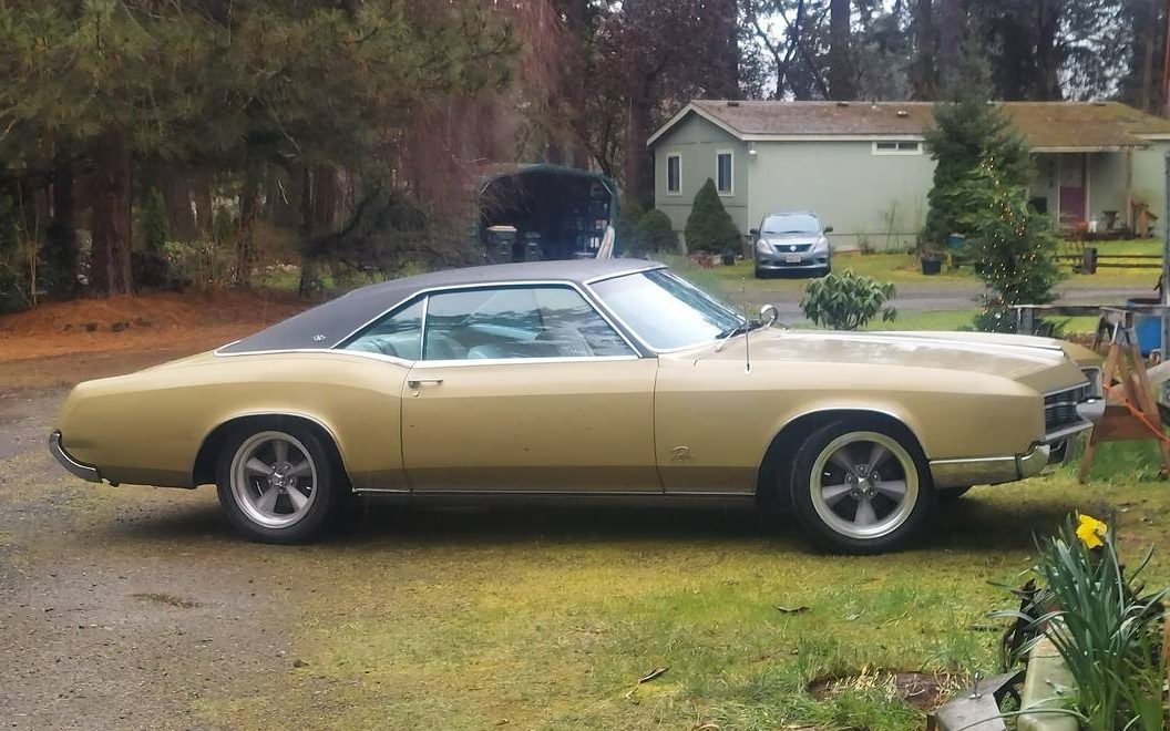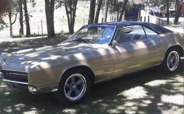 Looking regal in its Riviera Gold Mist finish, a finish said to be original, this Riv is a standard model as opposed to the more performance-oriented GS version. One body style existed, a two-door hardtop, and it was responsible for a total production volume of 42K copies in ’67. Back to that gold finish, it still presents pretty well, as does the black vinyl top. The seller tells us that this Buick has been in storage for twenty years and has accumulated 140K miles. Rust doesn’t look like it’s an issue, and the only body detraction noted is a small crease in the passenger side quarter panel. Now, those wheels. Yes, I like them, but not necessarily on a car like a second-gen Riviera – they’re more hot rod material than an upscale cruising coupe.