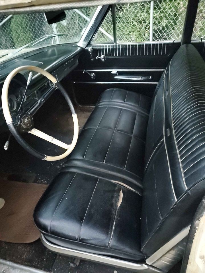 The imitation wood paneling on the sides has completely faded out with only the outline of the areas surviving. And there is a big dent in the driver’s side quarter panel by the taillights which could prove challenging to fix. The color of the wagon is said to be yellow but could just as well be white. The black interior is original and survived better than you might expect, except for the front seat bottom, carpeting, and again the rust in the tailgate area. Station wagon resale values are on the rise, but can this one be restored without breaking the bank?