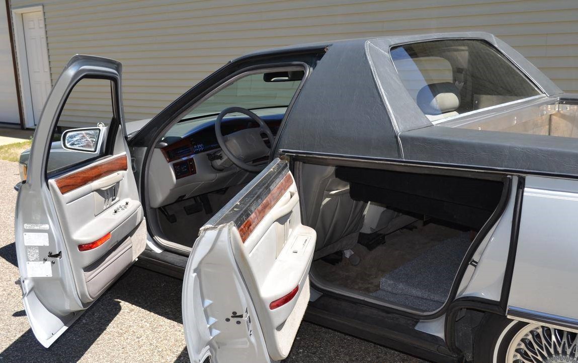 The interior is finished in the same seats you would find in a De Ville. They are leather covered split front bench design. The interior features an electronic dashboard that uses a digital speedometer, trip information, and electronic controls for the heat/air conditioning system. Normal Cadillac features of the period include cruise control, tilt steering wheel, power windows, power door locks, and power seats. Everything on the car works.