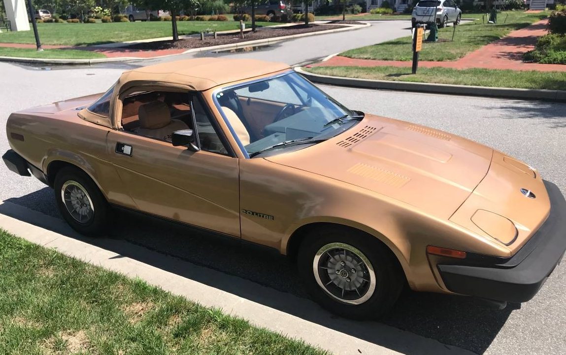 The owner states the car gets 30 mpg and is comfortable for people six feet and over. They also say the original build sheet is with the car. Thus far, the ingredients baked have produced a scrumptious treat. This tan, quirky convertible is exactly the car to get noticed in. The TR7 does have some standout roles in British television. So, pull up to your next black tie event, toss the keys to a valet, and order a Ginger Beer and scones. Bond want to be, remember?
