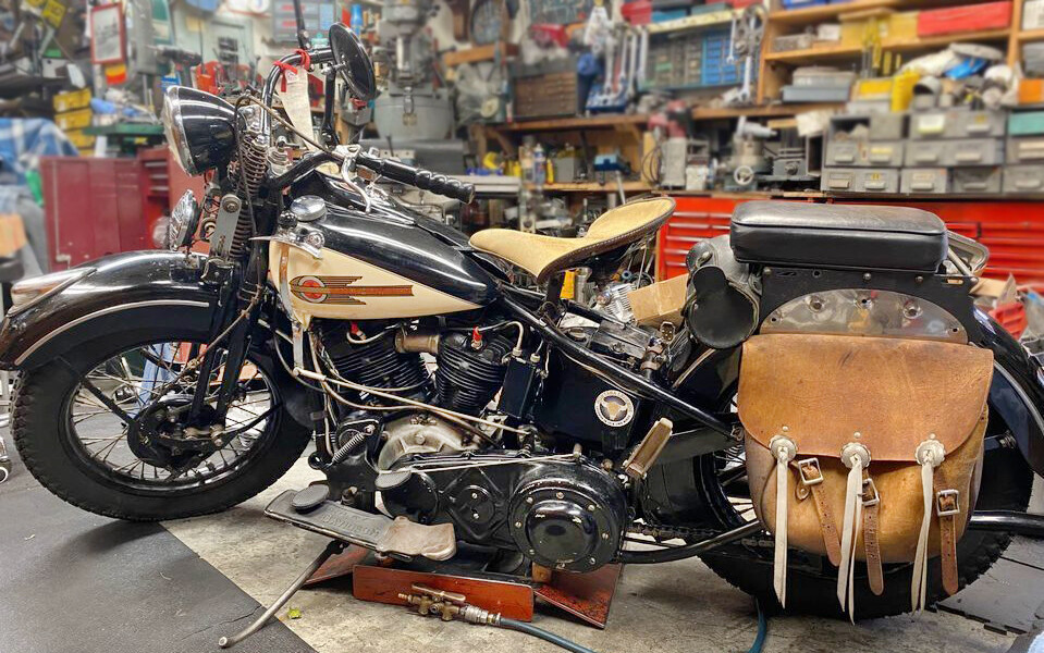 In early 1936, Harley-Davidson introduced the EL engine, a 61-cu.in. overhead-valve V-twin, which had unique rocker boxes that some thought looked like fists, or knuckles, thus the name Knucklehead. A few years later, they came out with a 74-cu.in. version. This Knucklehead is very interesting, as they all are, just due to the history of the country and the world at the time. 1939 was before the U.S. was drawn into WWII, and the World’s Fair was going on, and the Great Depression was still a thing. There were a lot of events going on when this motorcycle was developed and produced, which just makes them even more interesting to me.