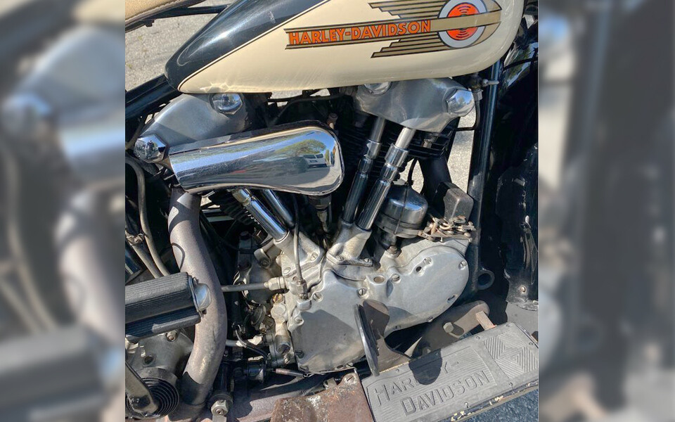 I wish we had better photos of the engine on this beautiful bike, but this is about it. As I mentioned, this is Harley’s EL, a 61-cu.in. OHV 45-degree V-twin, which would have had around 45 horsepower, and it’s backed up by a tank-shifted four-speed transmission and a left-foot clutch. The seller says that the current owner has had it for 50 years and it’s been meticulously maintained. The drivetrain was rebuilt in the 1980s and it runs and operates flawlessly, according to the seller. Any thoughts on this Knucklehead, or that opening bid price?