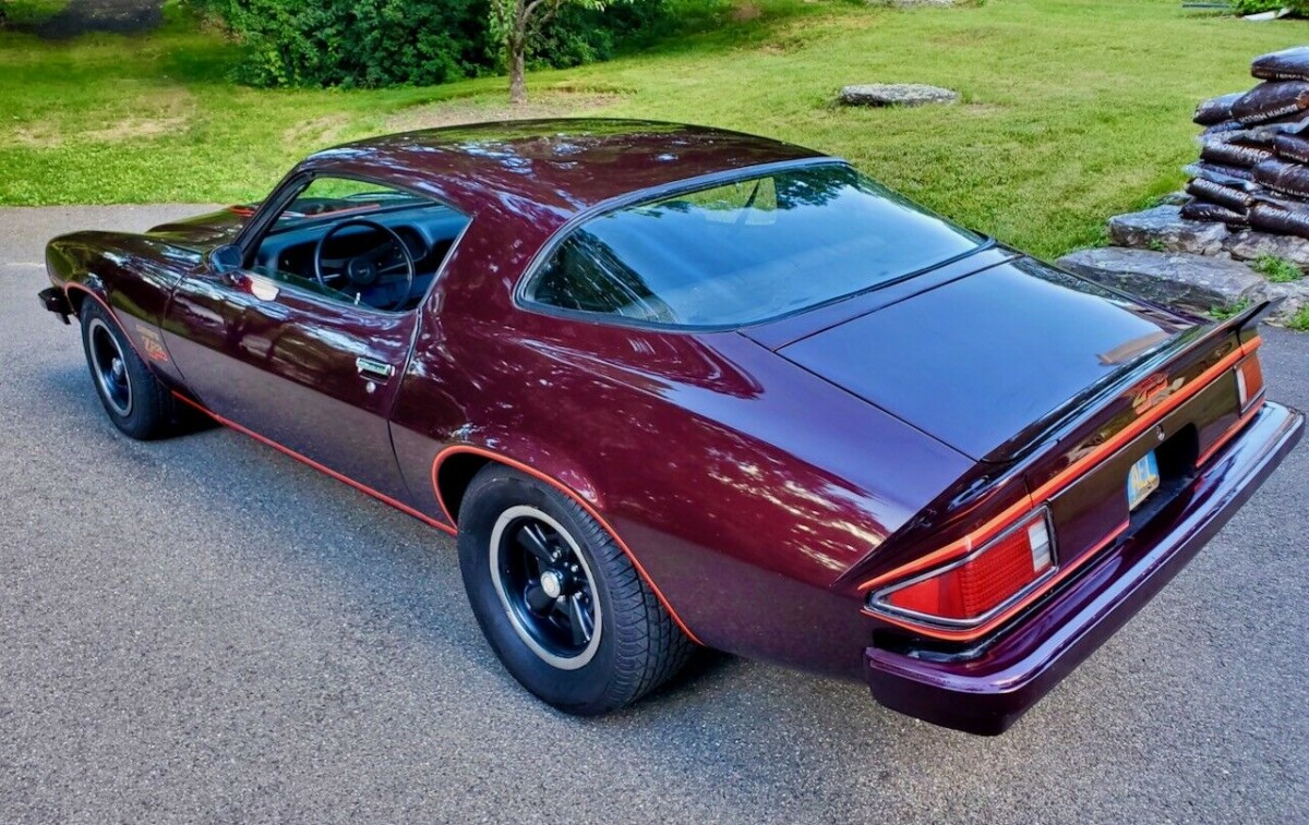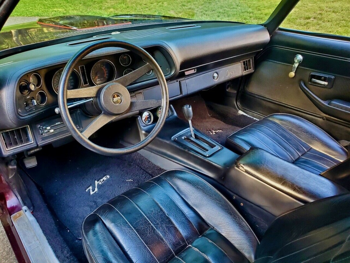 It seems that the Camaro has led quite a life since the owner acquired it more than three decades ago. He says that he performed a restoration in the 1990s, but I’m more inclined to refer to the work as a refurbishment. When the work was performed, the owner went the whole hog by sourcing many genuine panels from a dealership to ensure that the body was physically sound and straight. So far, so good. He then applied a fresh coat of paint, but this stunning Burgundy that you see in these photos is not the car’s original shade. The Trim Tag indicates that the Z28 rolled off the production line wearing Code 51 Bright Yellow, but the owner chose this new shade. normally I’m an advocate for maintaining originality, but I’m happy to make an exception in this case. The Burgundy may not be perfect, but it certainly makes a bold and classy statement. There are a few marks and cracks, but nothing that would require immediate attention. The stripes, graphics, and glass are in good condition, as are the Rally wheels. Delving underneath the Camaro reveals spotless floors, while there are frame connectors that run from the front to the back of the vehicle.