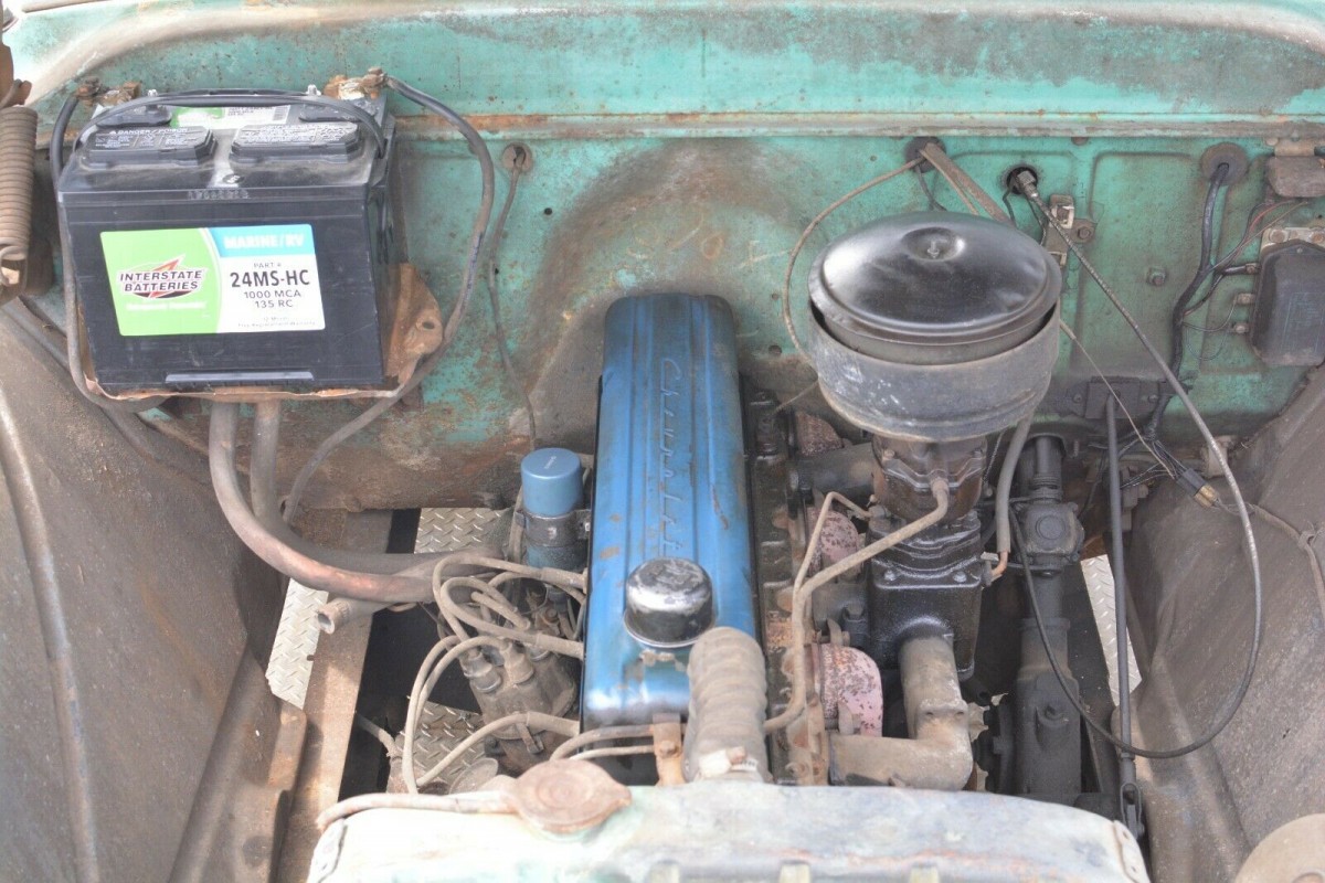 Another one saved from a 350 V-8 conversion! Given the leaf springs at all four corners suspension, and the manual steering gear box, and manual brakes…too much horsepower makes them dangerous. That inline 235