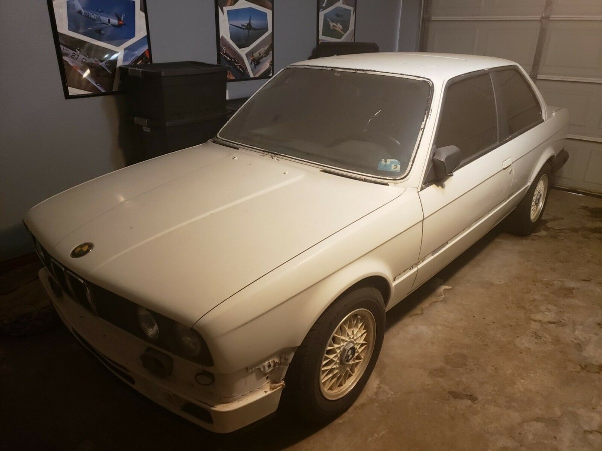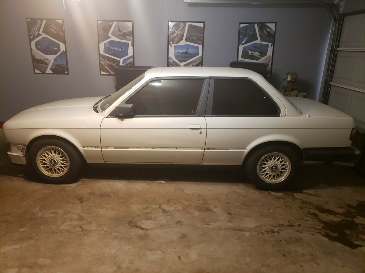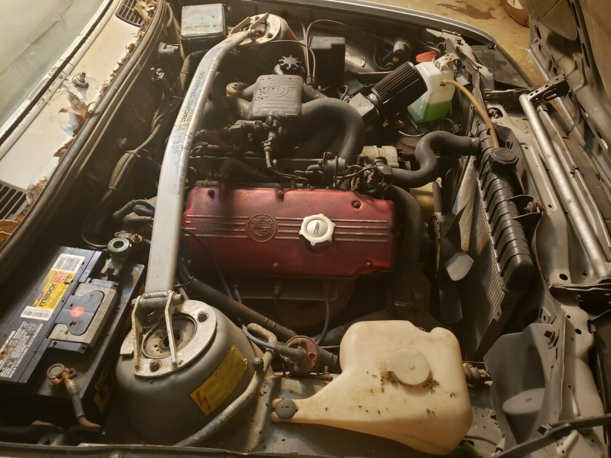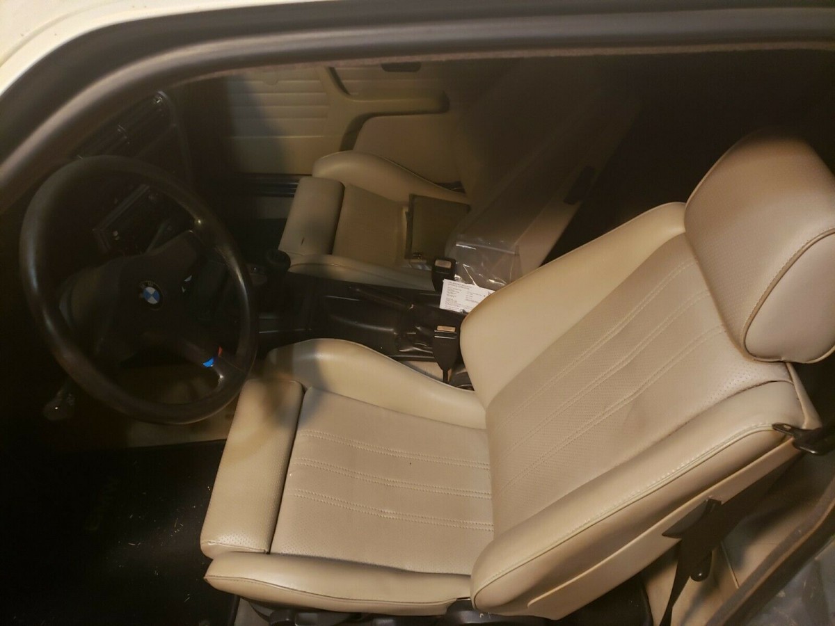 The seller admits it’s been parked in his garage for several years, despite receiving a host of desirable OEM upgrades. These include the white-painted basketweave 14 inch alloy wheels; factory sport leather bucket seats; a replacement, crack-free dashboard; H&R lowering springs; a three-spoke M-Tech steering wheel; and much more. Some restoration work has been attempted, with the side moldings and front bumpers removed, but that’s about as far as he’s gotten. The 318i has been parked for some time due to the seller being deployed, and as such, it will need to be trailered home.