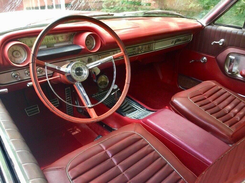 My mom had one of these as her second car – it lived until the early ’70s until it succumbed to the tin worm in rural Ohio and my dad stopped driving it because he felt it wasn’t safe anymore. He pulled some parts and pieces off of it before it was hauled off to the junkyard. A few days later, I saw a truck loaded with smashed cars headed past our house and sure enough, the still recognizable shape of our maroon ’64 was there amongst the other pancaked cars. 45 years later, the door pulls on my Bronco are partially fabricated from the seatbelts of that car.