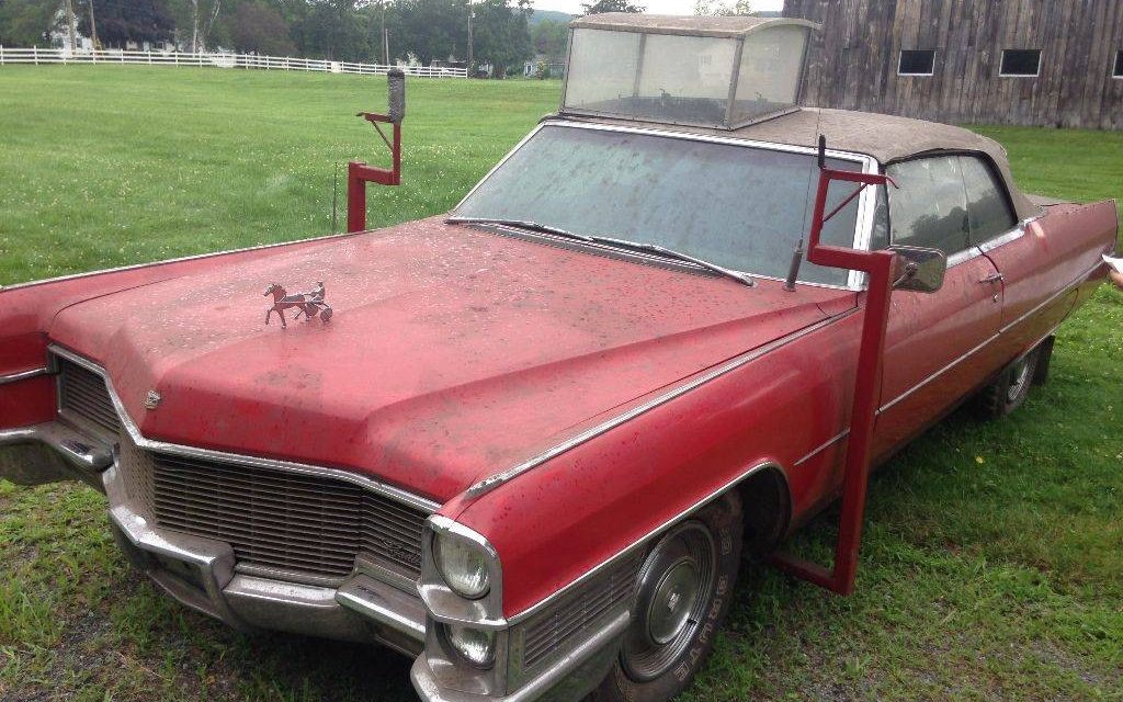 Under the enormous hood of this DeVille convertible is a 340 HP, 429 CI V8 engine. The seller makes no mention of this convertible’s operating prowess but there is a very faded inspection or registration sticker on the windshield which looks to be from the early ’80s. It also appears to be from the state of Indiana though this car was supposedly used at Hinsdale Racecourse in New Hampshire. If the sticker is accurate, this car may not have operated for a very long time as harness racing ceased at Hinsdale in 1985. And residency in Indiana, with use in New Hampshire, and now domiciled in Massachusetts pretty well debunks the mileage claim. The sole transmission choice for Cadillac in 1965 was GM’s almost new Turbo-Hydramatic 400, three-speed automatic transmission.