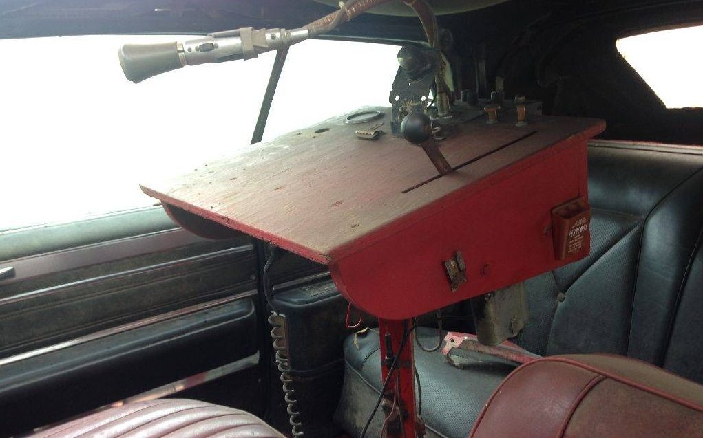 And now for the announcer’s control stand and microphone! It makes for an interesting conversation piece, to say the least. I guess the decision is whether or not to leave it in place. It seems that removal would destroy the uniqueness of this car and turn it into another, pedestrian ’65 Cadilac convertible. But driving around with it in place would be “odd”.