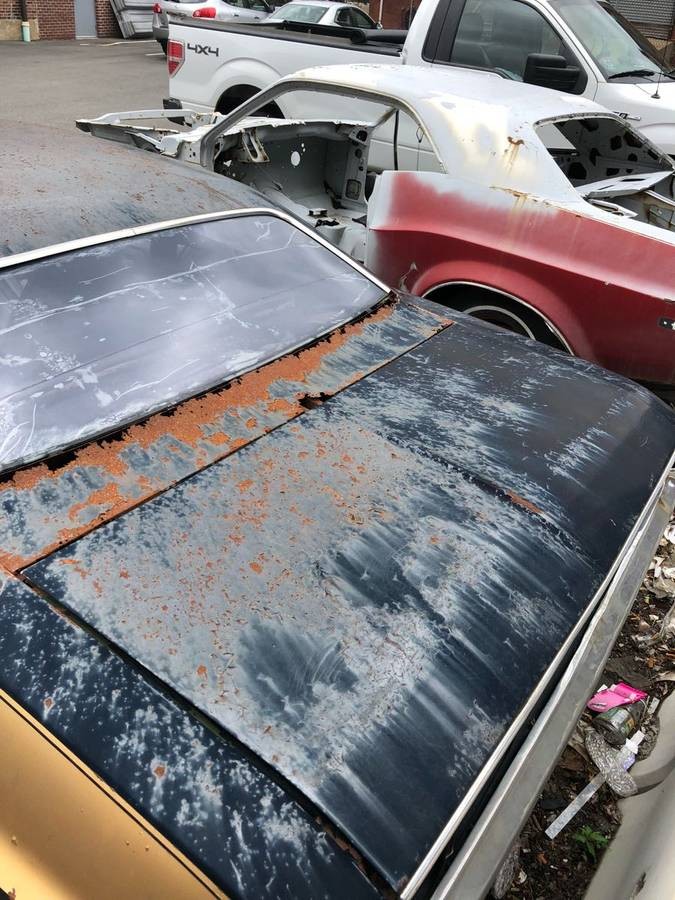 Looking at the way the rear end rusted, but not the front, my guess is there is no back glass, that’s plastic sheets, not plexiglass. Trunk is probably gone, rear quarters rotting from the inside. Massachusetts weather cannot have been kind.