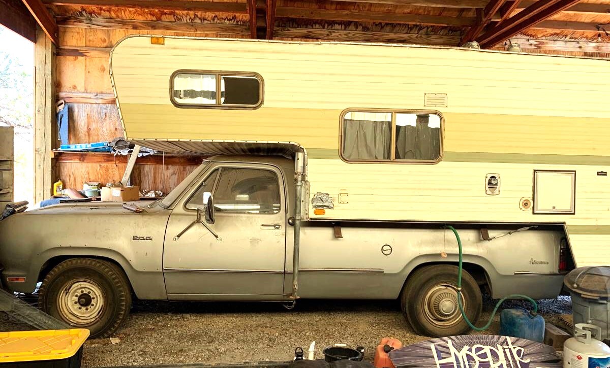 As the story goes, the seller’s dad bought this ’76 D-200 when it was new and added the camper the following year. It was parked in 1997 and left there (for whatever reason). If the indicated mileage of 71,700 is accurate, that’s not a lot of use over the 20+ years the truck/camper was in service. According to badging on the pickup, it came with the Adventurer package which essentially was a trim combination of various brightwork and doodads.