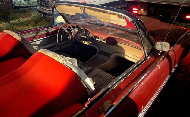The seller has a white coupe from 1960 and a red convertible from 1962. And the ’62 has tell-talle signs of the limited production roadser (like the cover over the rear seats). More good photos are provided of the former car, while the latter vehicle was snapped in the dark, yet it presents as the nicer vehicle. Since the seller describes both as projects, we assume neither runs, and we don’t know what it would take to rectify that.