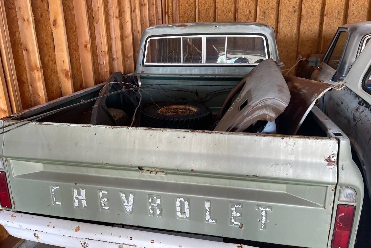 The seller (or perhaps an heir) is or was a fan of 1970s General Motors hardware. The two trucks are Chevrolet K10 (1/2 ton 4X4) models from 1970 and 1972. The C/K series of Chevy trucks was revised in 1967 and the design would run through 1972. They were marketed as the “Action Line” of pickups and would also provide the basis for the K5 Blazer, an off-road SUV (before they were called that). The seller’s two machines from this group are shown the same way as the rest, parked close together and nose-to-wall, making it difficult to ascertain the condition of each.