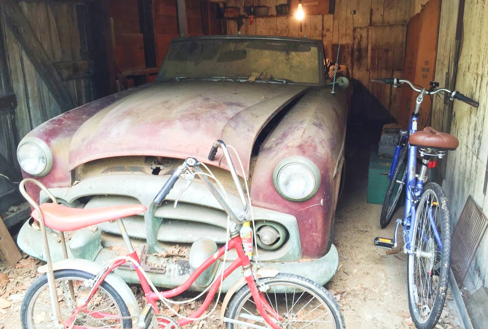 Now this is a cool sight! While this barn find might not be a muscle car or even an incredibly desirable model, there aren’t too many things as cool as a ’50s American convertible, in this case a Packard, sitting in a barn with a Schwinn parked in front of it. And in the garage next to this one is another Packard, it’s a sedan, but it has a rebuilt engine and could be turned into a driver or used as a parts donor for the more desirable convertible. You can check out this pair here on eBay inĀ Belvidere, New Jersey with an opening bid of $5k for the pair.