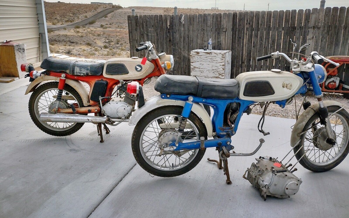 If you were raised in the 1960s or 1970s, you may have had a small motorcycle with a pressed-steel frame such as this pair of 1968 Honda SS125A Super Sport motorcycles have. Or, maybe you have one now? These two rare project bikes can be found here on eBay in Bullhead City, Arizona. The current bid price is just over $130 but the reserve isn’t met, of course.