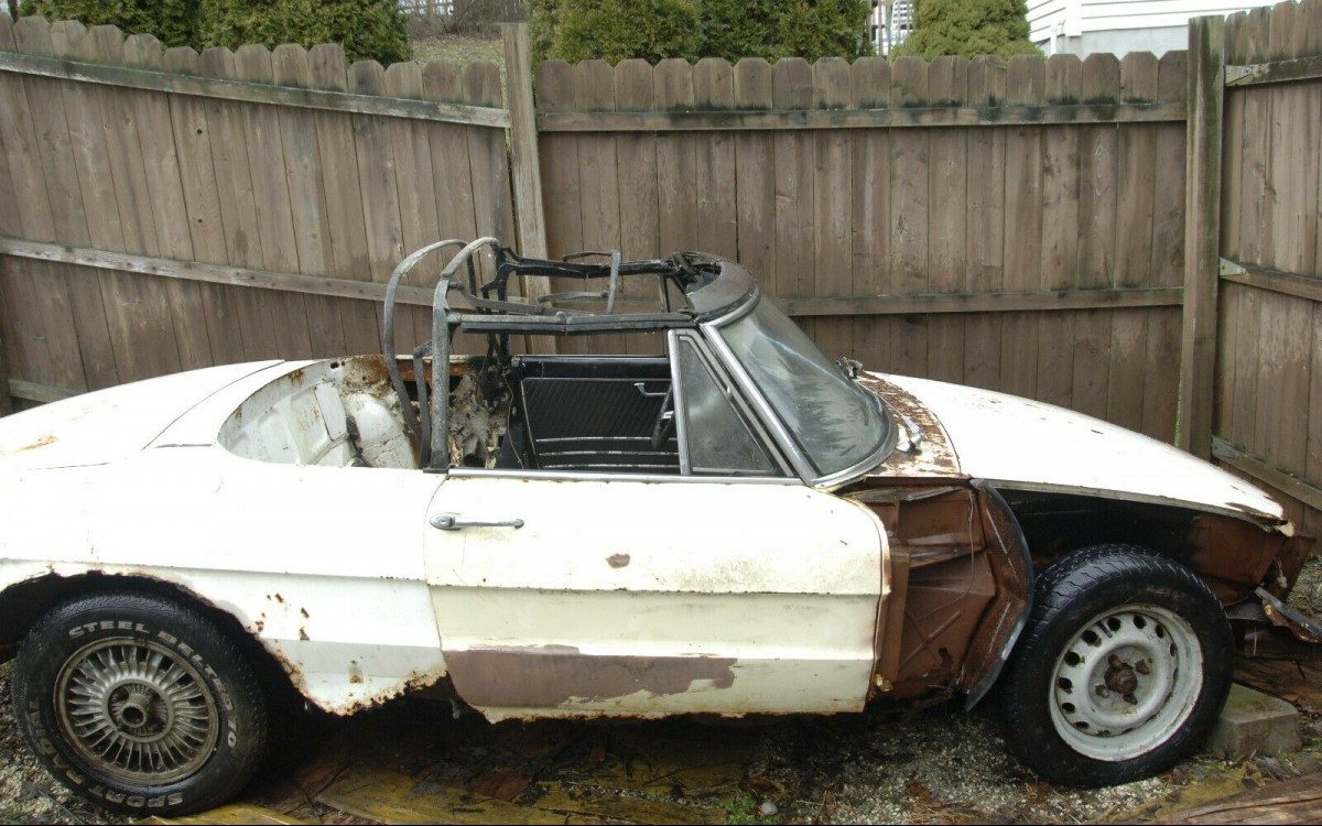I like a duetto as much as most other guys, but these are just sad. Several of my friends had them while we were all stationed in Europe. New ’67, another new one in ’68, and my last year a different guy bought a new ’69. They may have all been 1750cc cars. The oldest was a powder blue, middle one red, and last one white. They were NOT fun in cold German winters, but then I owned something else. Perhaps an Alfa Club should offer this guy a “reasonable” amount and just use the worthwhile parts on their project cars.