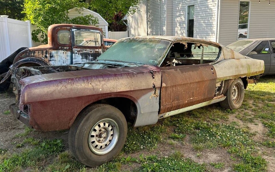 Our thanks go out to reader Mitchell G. for the tip here! The main Torino is said to have been born an R-Code, and if I’ve got my Ford ducks in a row I think that means the 5th digit in the VIN is the letter R, indicating a Ram Air car with this one originally sporting a 428 cubic-inch 4-Barrel Cobra Jet V8, with a 4-Speed here too. I’d be salivating right now if the factory combo was still present, but it isn’t, although the seller is also offering a turn-key 428 with plenty of goodies inside for an additional $5,000. No word on whether or not he’s got an extra 4-Speed to go along with it, but some good news is the 9-inch rear-end is still intact.