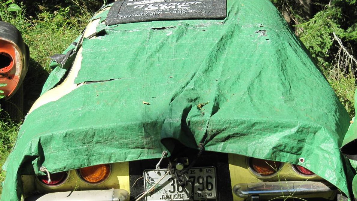 You know it’s trouble when it’s been sitting long enough for the tarp to disintegrate.