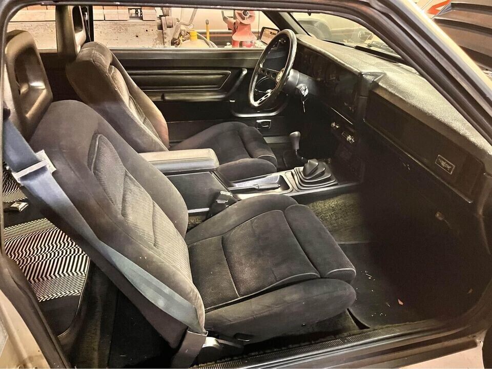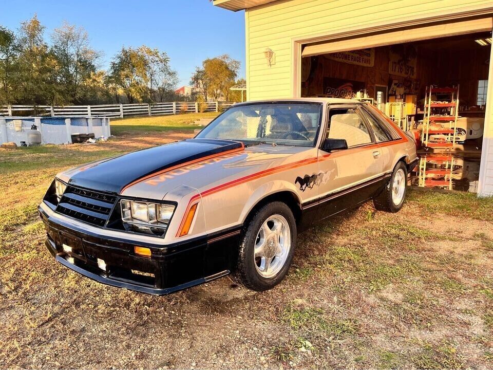 This one has the 302 V8 that has been reworked to 306 cubic inches with a roller camshaft and other goodies. The transmission has been upgraded to a later Borg Warner T5 with some adjustments to the rear end. The body and paint look good with no reports of any rust. Temporary front seats from 1986 are in the car while the original Recaros are out waiting for the next owner to redo them. You can identify this Mustang by its silver pony wheels (not shiny). All the Indy graphics are intact.
