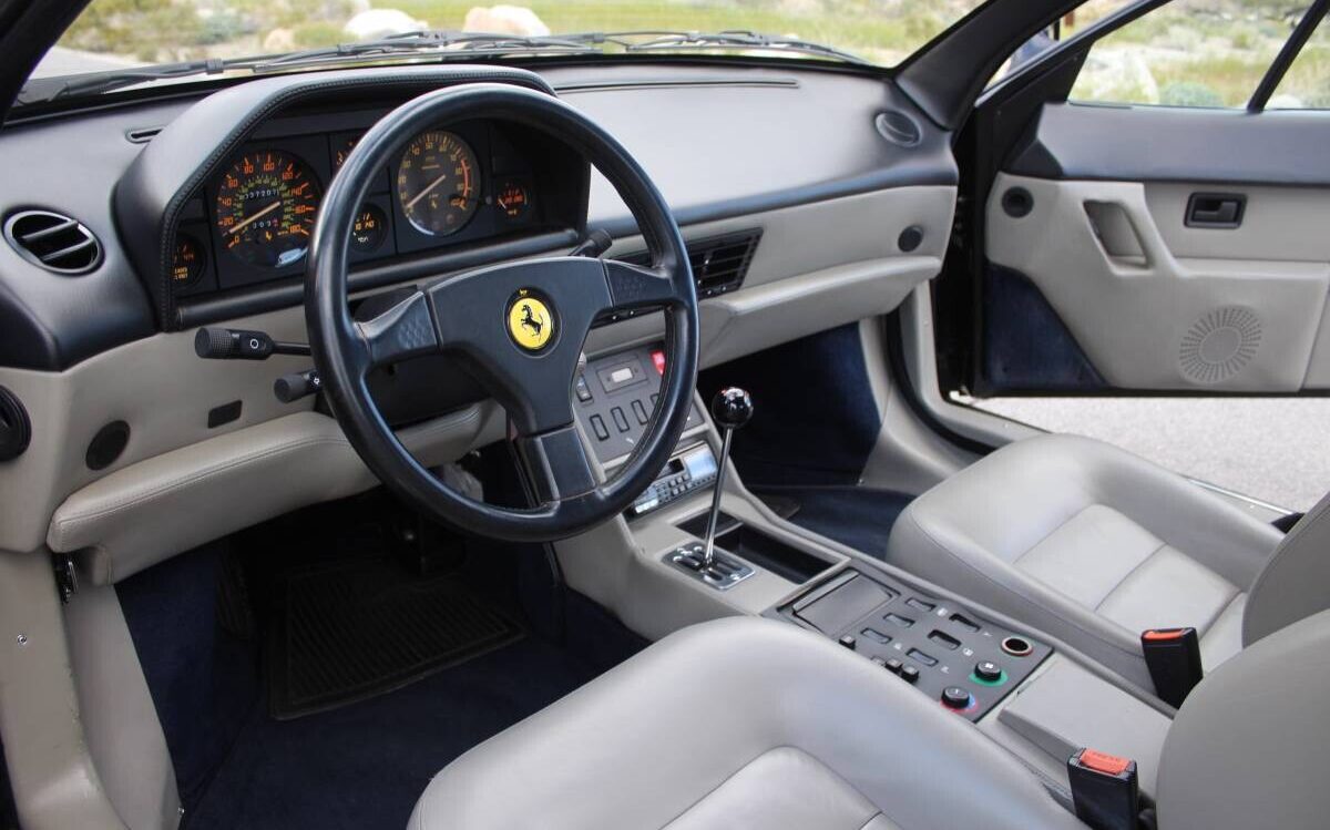 Gray interiors ruled the day in the ’90s, and the subdued hue of this Ferrari looks far better than most. The tall polished metal shift gate recalls Ferraris of the ages. The array of rectangular switches typifies European styling of this time as well. Forget about the stereo; the symphony of a fuel-injected V8 behind your head provides a rewarding soundtrack of your own creation.
