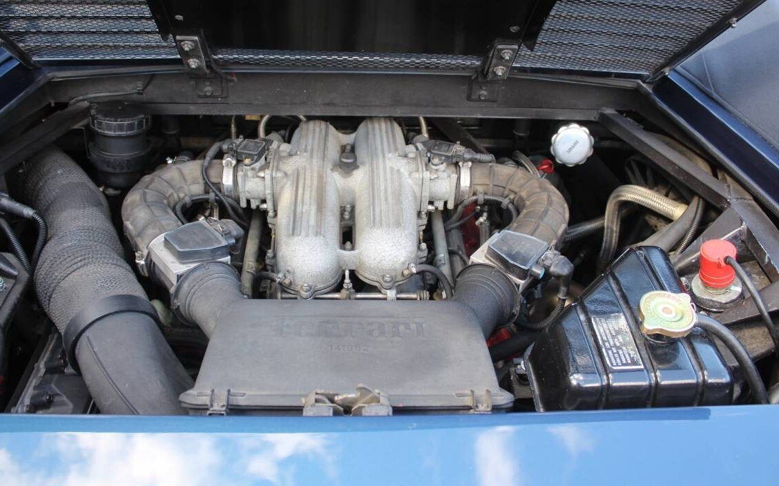 The mid-engine 3.4L (208 cid) V8 makes 300 HP, propelling the 3300 lb Mondial to 60 MPH in about six seconds. Ferrari changed the configuration from transverse to longitudinal with a new transaxle in 1989, taking the “T” designation from the look of this new drivetrain design. Thanks to AutoEvolution for some details.