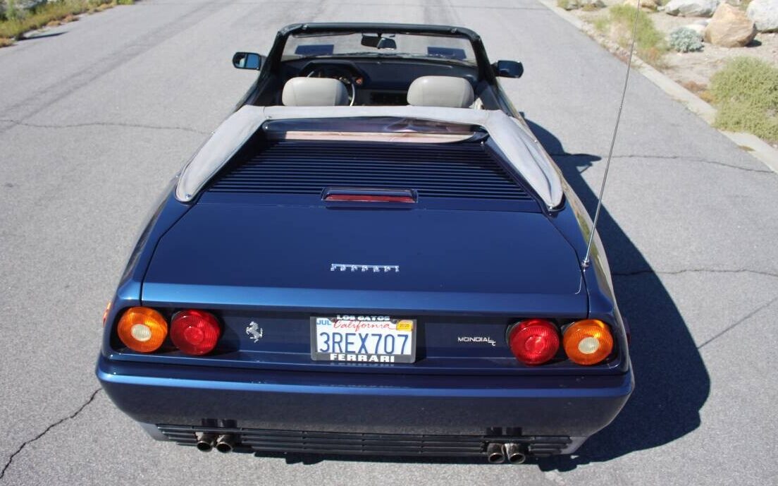 Massive air intakes behind the doors add style and obvious function. Factory 16 inch wheels look like skateboard wheels compared to today’s monster rolling gear, but the mid-engine Mondial T’s 0.89 g skidpad rating gives most drivers all the grip they need to corner with today’s portly muscle cars. Ferrari only made 840 of the Mondial T, assuring exclusivity. This color combination may polarize potential buyers, but I like it, especially the blue. For full price, though, I’d hold out for one with the more traditional saddle interior. Do you consider the Mondial T a “real” Ferrari?