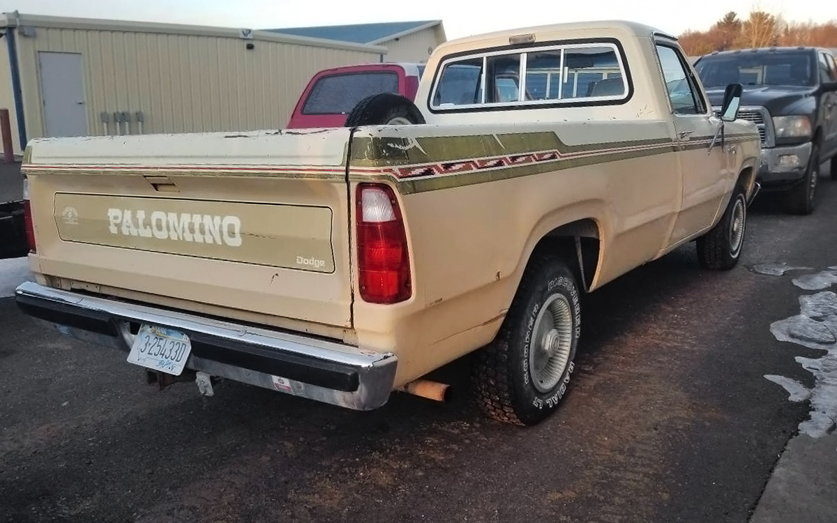 This is the only photo that shows some slight rust in the bodyline at the bottom. The seller says that there is no rust and this was a Montana truck originally. That would make sense with the Palomino equipment package being related to a western theme and horses. Apparently, the Palomino package was available on both 2WD and 4WD Dodge D-Series pickups in 1979 only, in both short-wheel-base and long-wheel-base configurations.