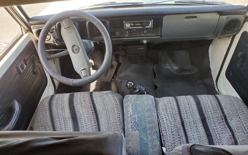 Chinook RV was a California company that just fairly recently went out of business, back in 2005. They are really nice campers and the pop-top version is the way to go, unless you’ll be living in it during the winter or something. Those fabric sides won’t give much insulation. The interior looks good with some wear as expected after 76,000 miles and four-and-a-half decades of use. But, a small, pop-up chassis-mount pickup camper with a reliable Toyota engine and 4-speed manual transmission? Yes, please.