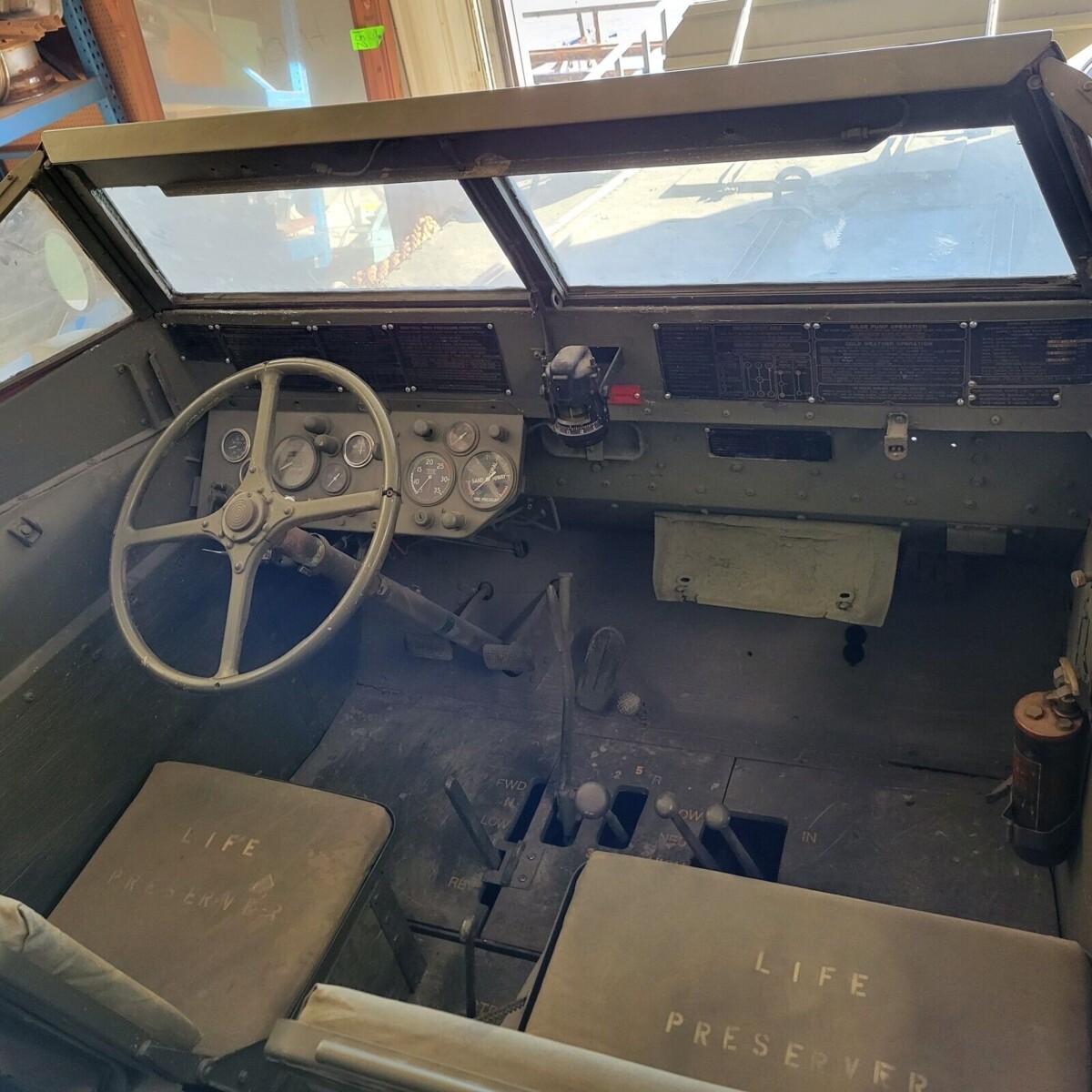 Since the DUKW is a military vehicle, it is unsurprising that its interior focus is on function over form. If you’ve become accustomed to air conditioning, cloth or leather seats, and power assistance for everything, life inside this beauty could be a shock. The front seats feature minimal padding and vinyl upholstery, while the back seats are converted ammo crates. There are the usual gauges to monitor the mechanical health and the appropriate levers to operate the transfer cases and engage the propellor drive. It is serviceable as-is, but if the buyer elected to perform a restoration, the world would be their oyster. If they select a faithful path, that means acres of army green paint. I’ve seen owners perform a color change on these classics, and the right color can make them an excellent promotional vehicle for a ship supply business or tourist venture.