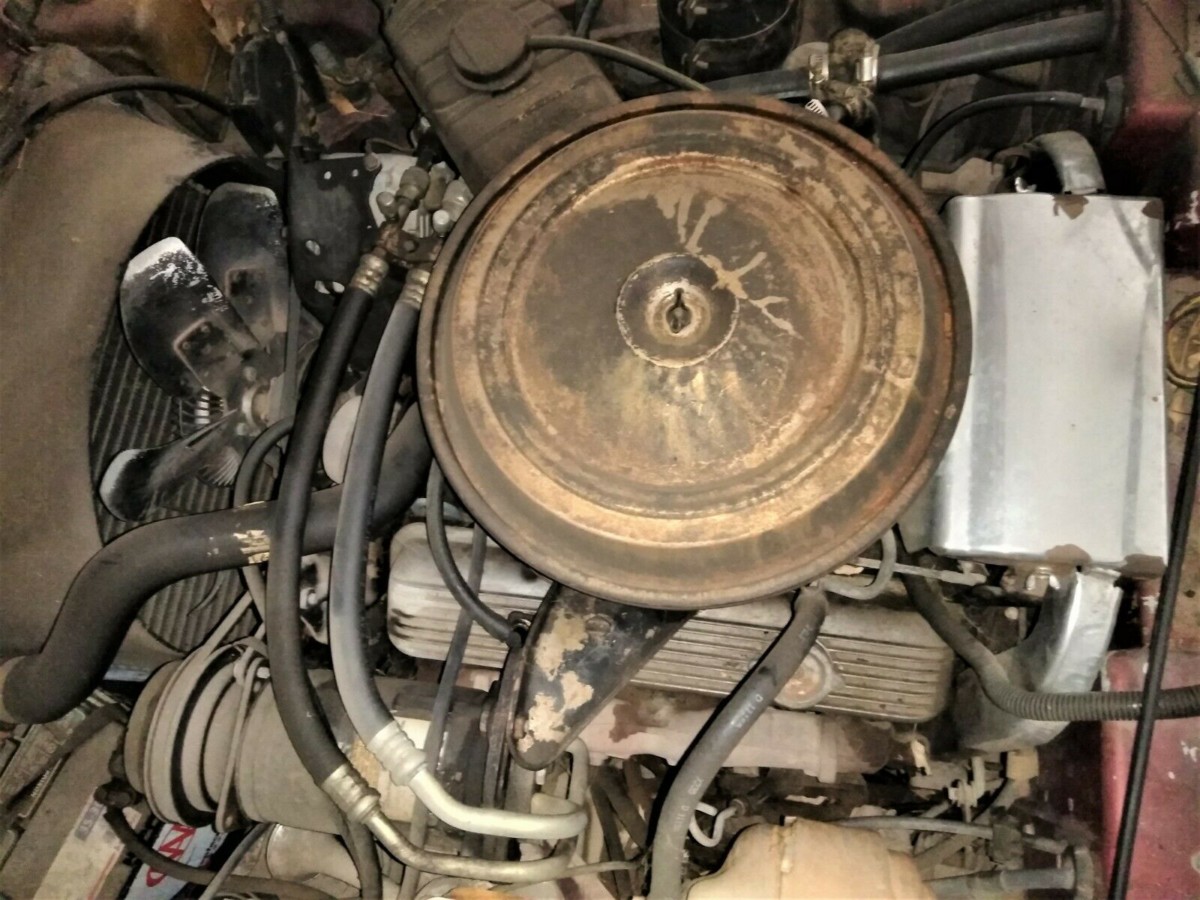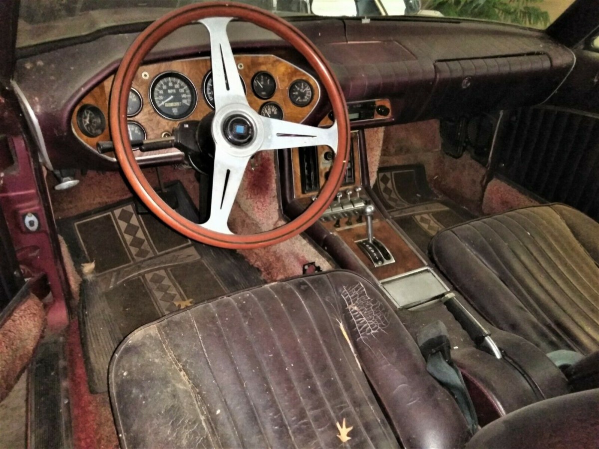 The interior is seemingly more good news, just appearing to require a good cleaning. The color isn’t the sexiest one we’ve ever seen, appearing to be a tired burgundy, but the wood trim and wood-rimmed Nardi-look steering wheel livens things up a bit. The dash doesn’t look to have any cracks and the center console and various switchgear don’t appear to be broken or stuck in positions that indicate an attempted repair gone wrong. The seats will need some work to be perfect, but there’s nothing here you couldn’t live with for a few years while the mechanical bits are sorted out.